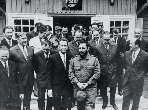 Фидель Кастро и первый секретарь ЦК КП Беларуси Пётр Машеров на пороге дома-музея I съезда РСДРП. Минск, 1972 г.